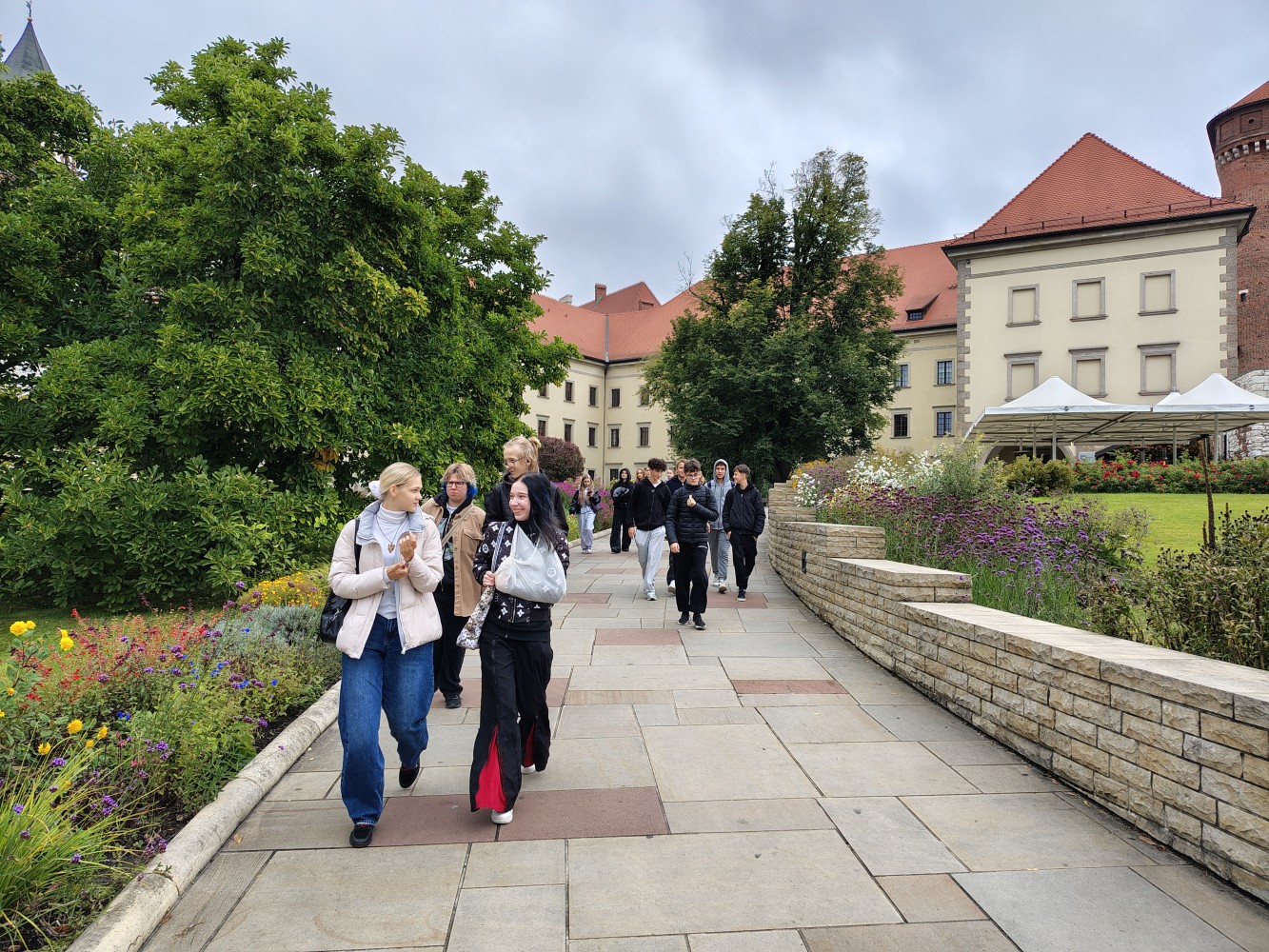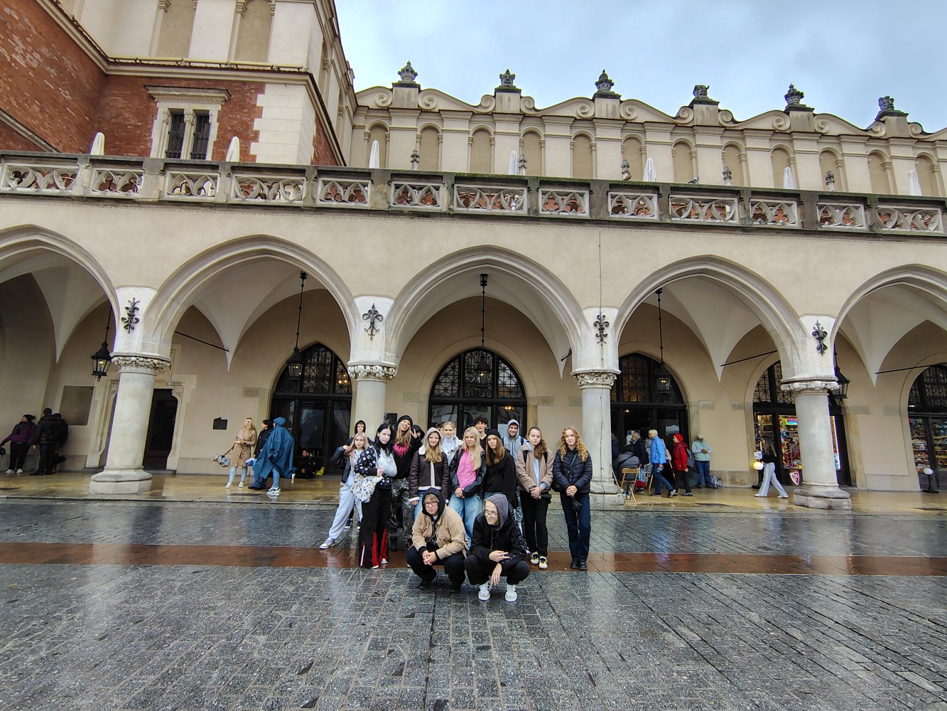 30 września 2025 klasa 1T wzięła udział w wycieczce integracyjnej na krakowski Rynek Główny. Zwiedzanie rozpoczęliśmy od Wawelu, gdzie poznaliśmy historię polskich królów oraz zobaczyliśmy dziedziniec zamkowy. Spacerując po wzgórzu wawelskim, poczuliśmy klimat dawnych wieków.