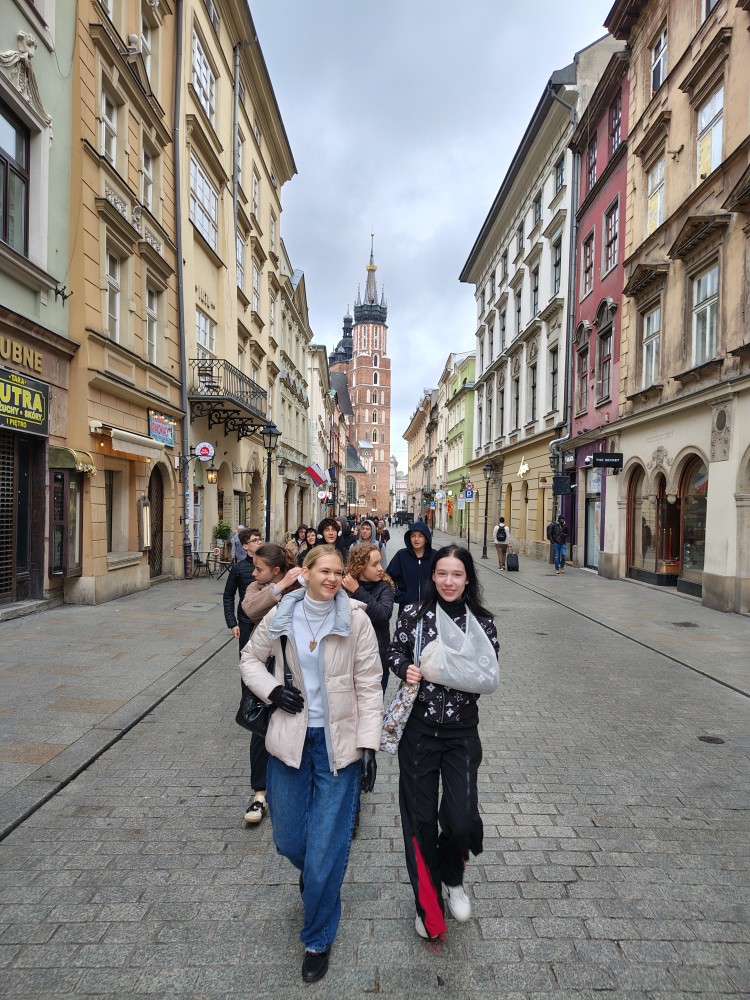 Następnie przeszliśmy Drogą Królewską – trasą, którą niegdyś przemierzali królowie podczas uroczystych wjazdów do miasta. Po drodze zatrzymaliśmy się przy pomniku Adama Mickiewicza i Kościele Mariackim, gdzie wysłuchaliśmy hejnału.