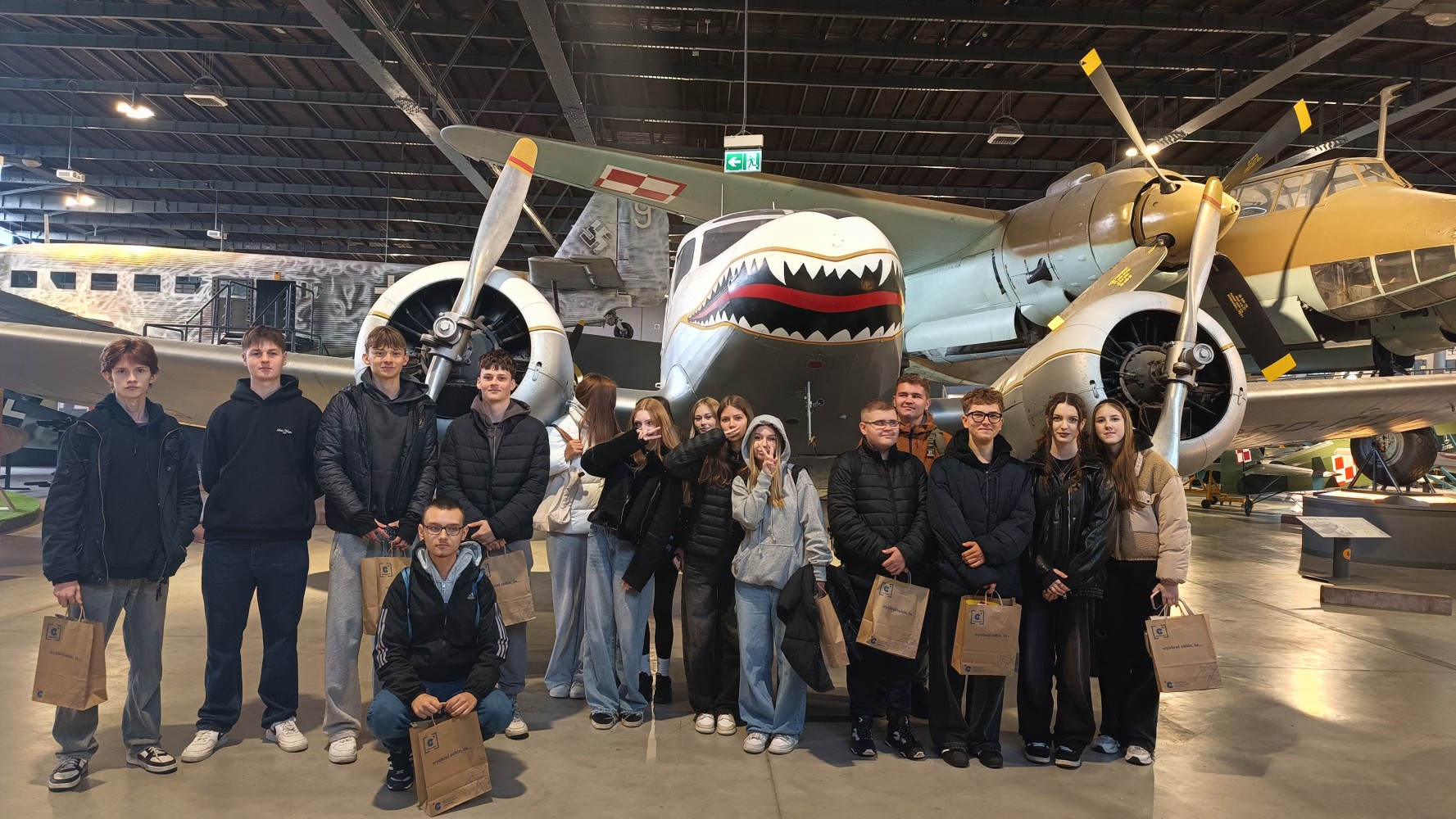 Uczniowie wzięli udział w warsztatach sitodruku w Cigiteonie oraz zwiedzili z przewodnikiem Muzeum Lotnictwa Polskiego.