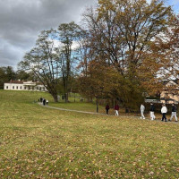 Ścieżkami parku w stylu angielskim wśród lip, dębów (niektóre mające 300 lat), wierzb i modrzewi mijając jezioro wróciliśmy do stodoły (obecnie mieści się tu sala koncertowa). To była ostatnia atrakcja naszej wycieczki. Pełni wrażeń wróciliśmy do Krakowa.