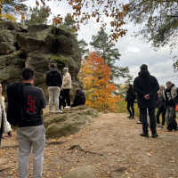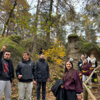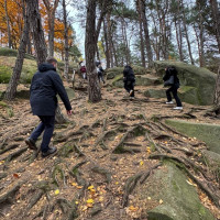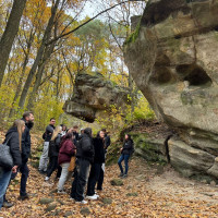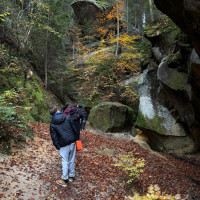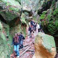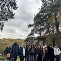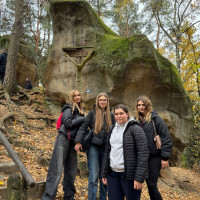 Pierwszy dzień w Ciężkowicach rozpoczęliśmy zwiedzaniem z przewodnikiem rezerwatu przyrodniczego „Skamieniałe Miasto”. Usłyszeliśmy historie związane z poszczególnymi skałkami i okolicą. Według dawnych legend, to nie siły przyrody spowodowały powstanie Skamieniałego Miasta, lecz klątwa rzucona na dawnych mieszkańców jako kara za występne życie. Urzekły nas piękne widoki okolicy. Skały przybierają tu fantastyczne formy Czarownicy, Orła, Borsuka, a wąwóz z wodospadem naprawdę warto zobaczyć.