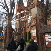 Idąc dalej szlakiem I. J. Paderewskiego poszliśmy w stronę budynku ZSOiZ w Ciężkowicach, na jego murach znajduje się anamorficzny – zniekształcony w celu osiągnięcia efektu trójwymiarowości mural autorstwa wybitnego artysty Ryszarda Paprockiego, a potem poszliśmy zobaczyć neogotycki kościół na planie krzyża łacińskiego z 1904r według projektu Jana Sasa – Zubrzyckiego. Osobliwością świątyni jest polichromia wykonana w latach 1943-1944 i 1954-1957 przez prof. Józefa Dutkiewicza przy użyciu niezwykle rzadko stosowanej techniki al-fresco.