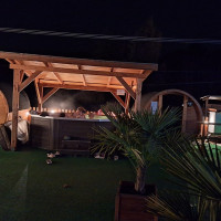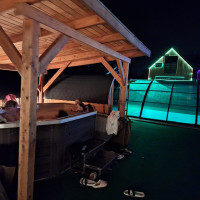 Dzień zakończyliśmy w „Zielonej osadzie” gdzie nowe domki w stylu skandynawskim ukazały się wieczorem w bajkowej scenerii. Młodzież zanurzyła się w jacuzzi i relaksowała , ciesząc się ciszą i spokojem . Basen sauna i balia ruska to dodatkowe atrakcje „Zielonej osady”