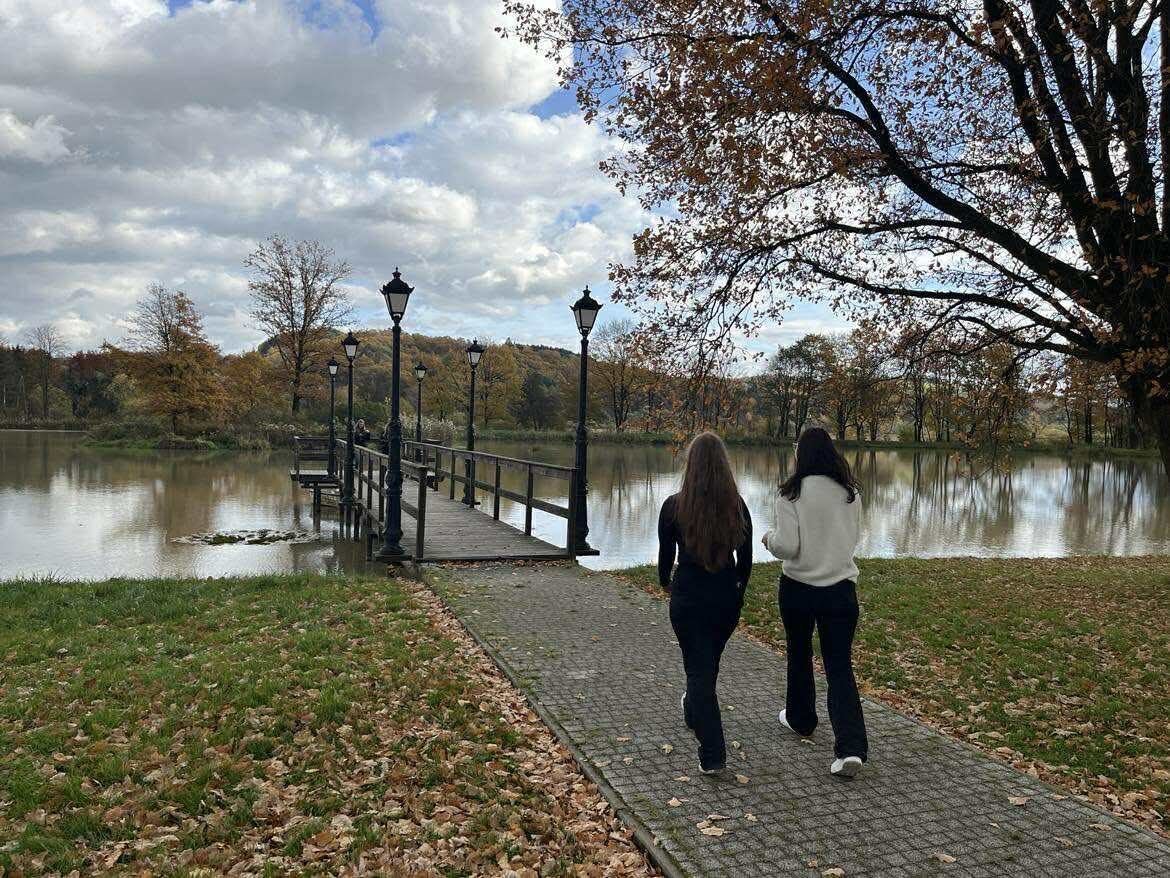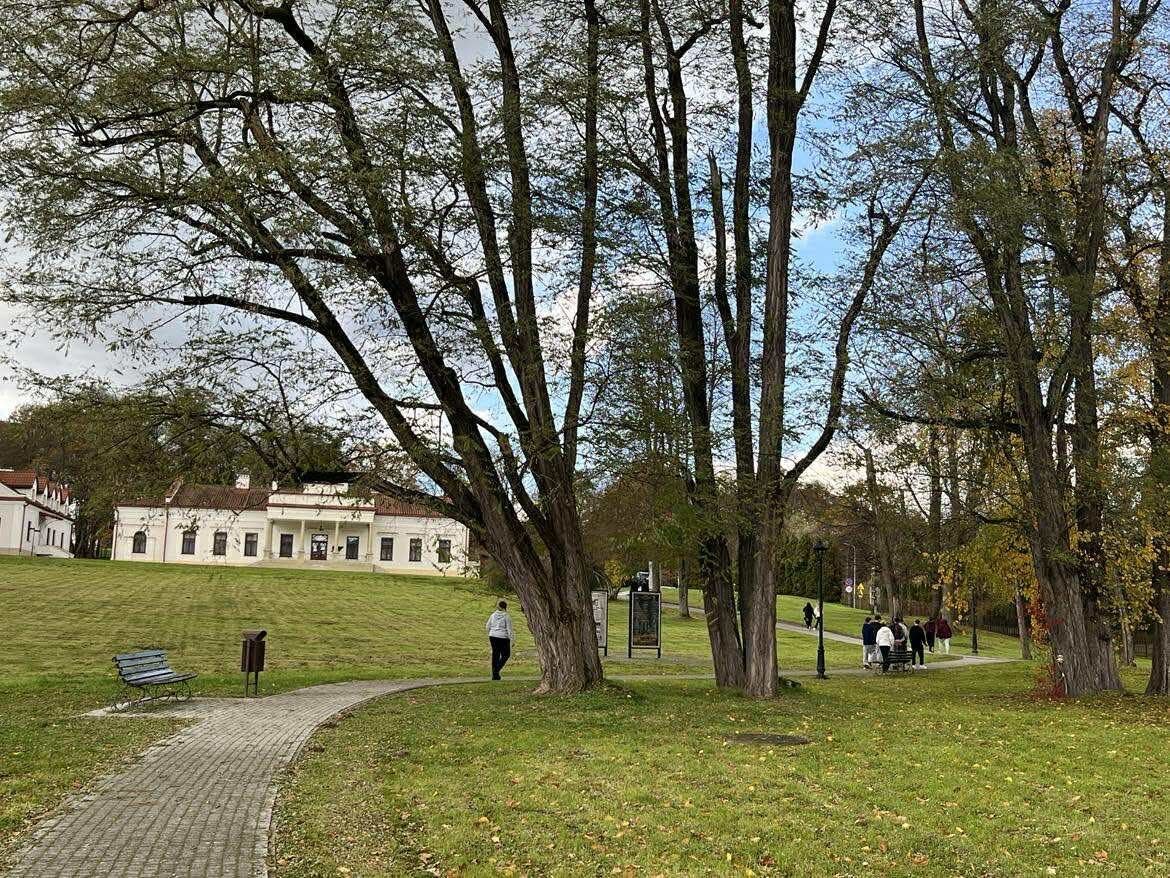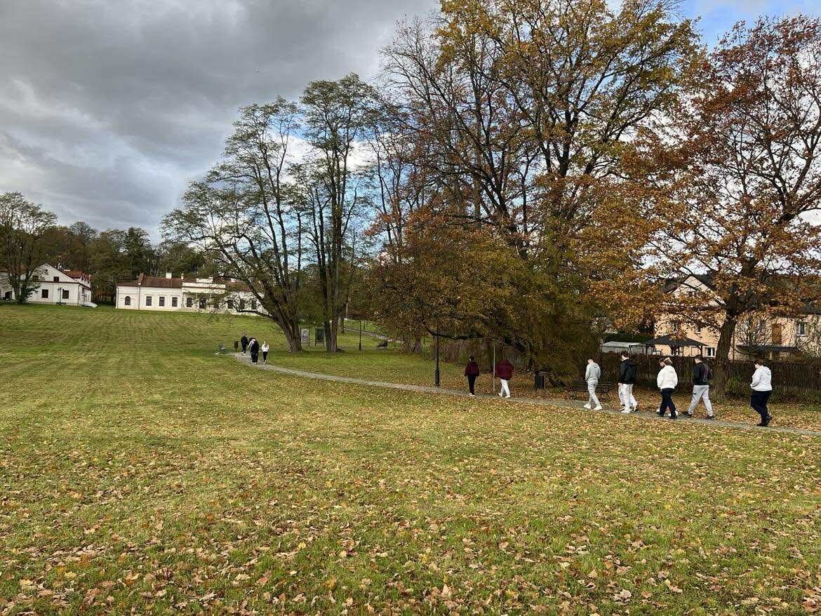 Ścieżkami parku w stylu angielskim wśród lip, dębów (niektóre mające 300 lat), wierzb i modrzewi mijając jezioro wróciliśmy do stodoły (obecnie mieści się tu sala koncertowa). To była ostatnia atrakcja naszej wycieczki. Pełni wrażeń wróciliśmy do Krakowa.