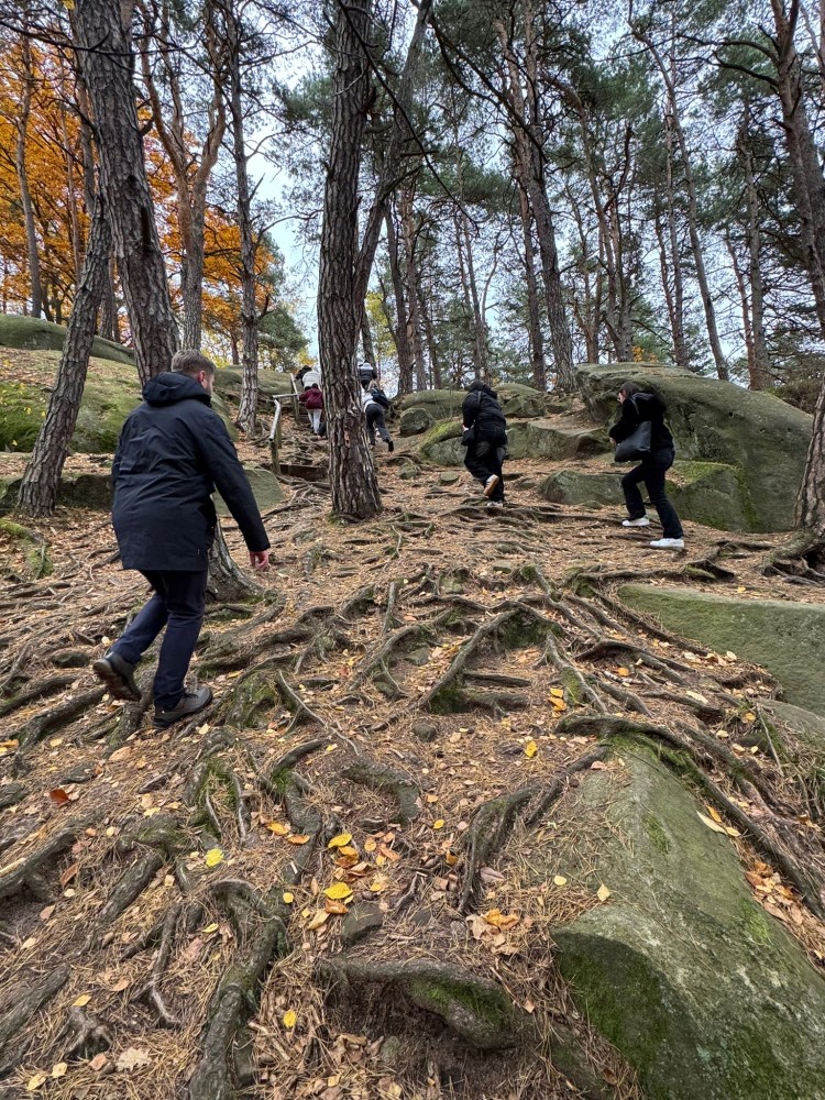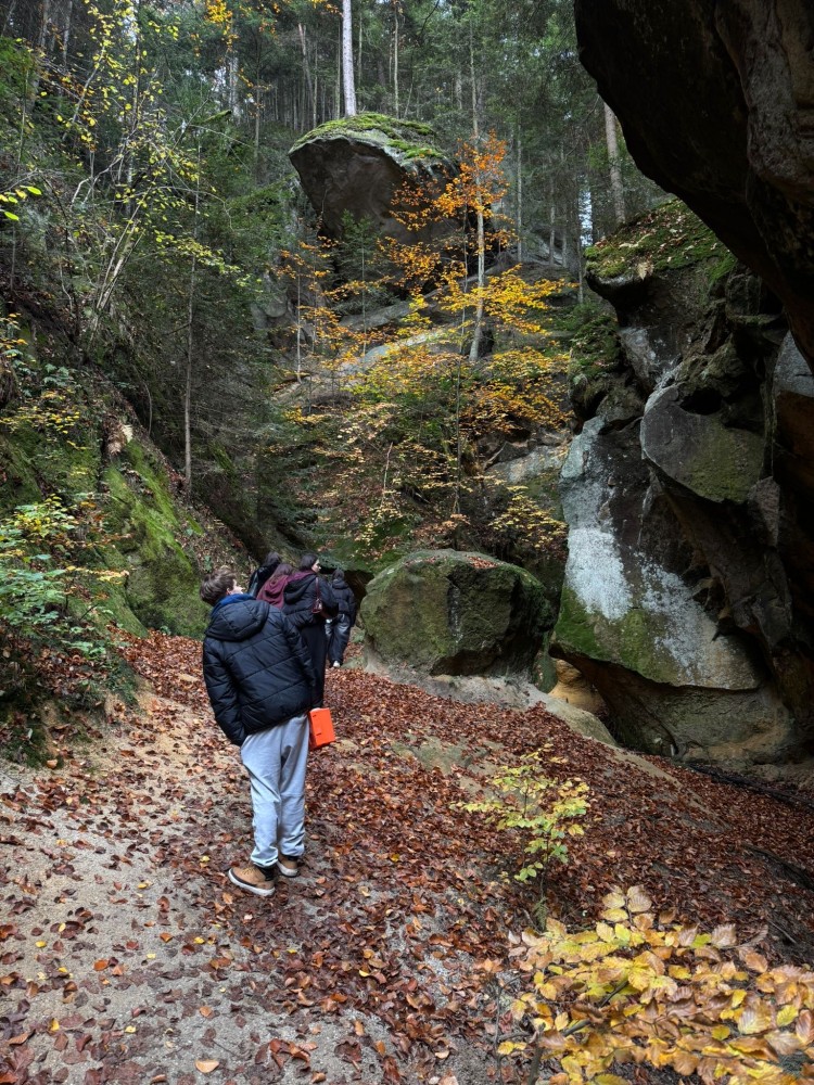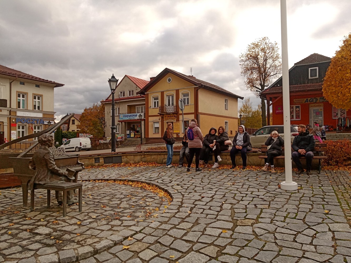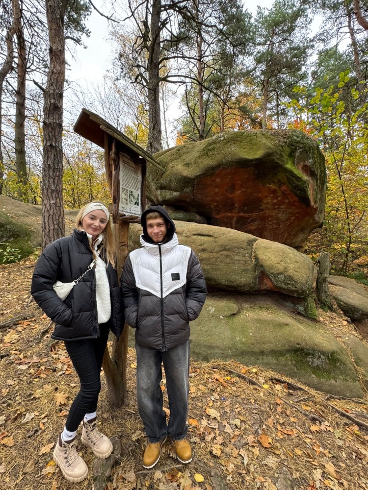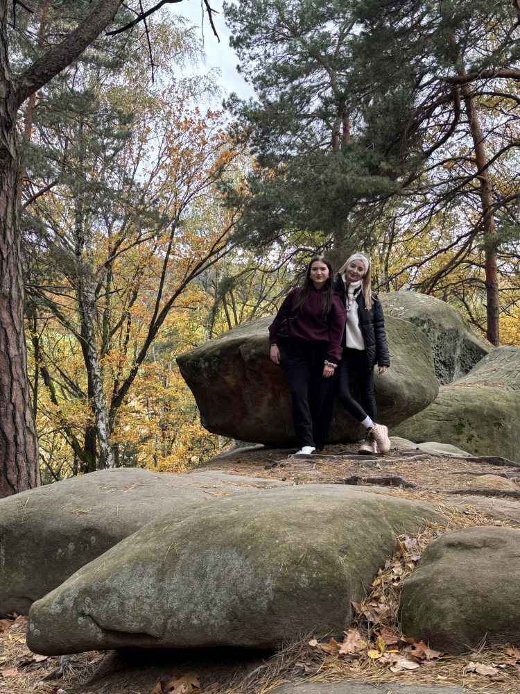 Pierwszy dzień w Ciężkowicach rozpoczęliśmy zwiedzaniem z przewodnikiem rezerwatu przyrodniczego „Skamieniałe Miasto”. Usłyszeliśmy historie związane z poszczególnymi skałkami i okolicą. Według dawnych legend, to nie siły przyrody spowodowały powstanie Skamieniałego Miasta, lecz klątwa rzucona na dawnych mieszkańców jako kara za występne życie. Urzekły nas piękne widoki okolicy. Skały przybierają tu fantastyczne formy Czarownicy, Orła, Borsuka, a wąwóz z wodospadem naprawdę warto zobaczyć.