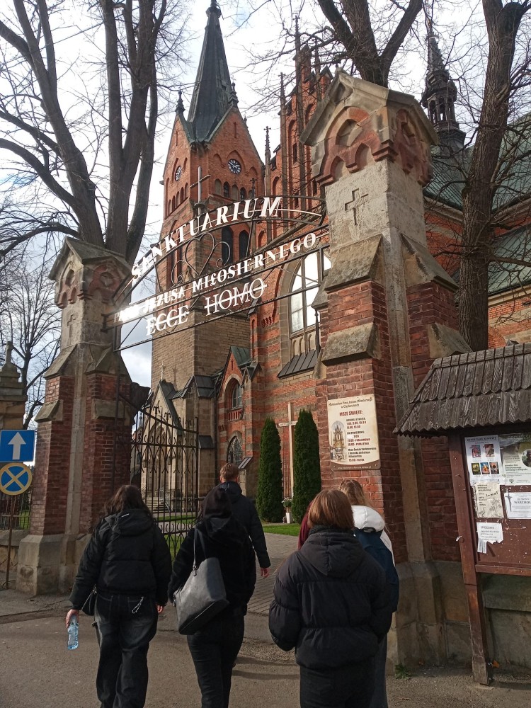 Idąc dalej szlakiem I. J. Paderewskiego poszliśmy w stronę budynku ZSOiZ w Ciężkowicach, na jego murach znajduje się anamorficzny – zniekształcony w celu osiągnięcia efektu trójwymiarowości mural autorstwa wybitnego artysty Ryszarda Paprockiego, a potem poszliśmy zobaczyć neogotycki kościół na planie krzyża łacińskiego z 1904r według projektu Jana Sasa – Zubrzyckiego. Osobliwością świątyni jest polichromia wykonana w latach 1943-1944 i 1954-1957 przez prof. Józefa Dutkiewicza przy użyciu niezwykle rzadko stosowanej techniki al-fresco.
