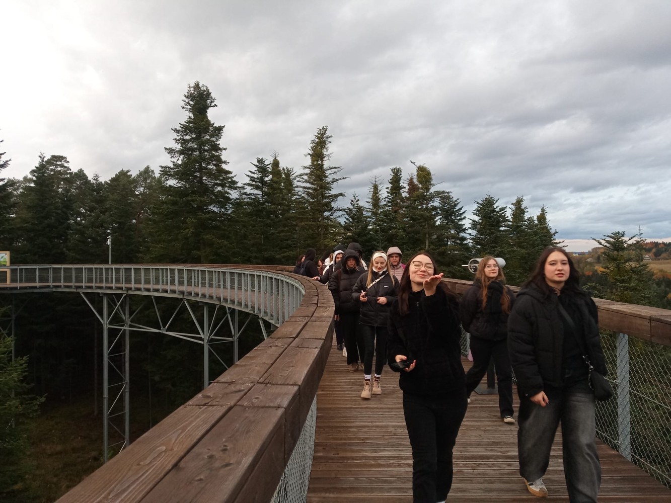 W restauracji ,,Pod Ratuszem, czekał na nas pyszny obiad, a miła obsługa i atmosfera lokalu pozwoliła nam nabrać sił, aby wyruszyć w dalsza trasę do „Ścieżki w koronach drzew” . Podczas spaceru Pani przewodnik przekazała nam wiedzę na temat tajników życia miejscowych dzikich zwierząt i ciekawostek związanych z tamtejszą roślinnością.