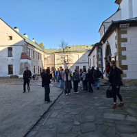 Kolejny dzień to wyjazd do Nowego Sącza. Zaczęliśmy od zwiedzania ruin zamku, który został zbudowany przez króla Kazimierza Wielkiego. Następnie udaliśmy się w pobliże Rynku, gdzie znajduje się Synagoga i poznaliśmy historię tej budowli. Dalej przeszliśmy pod gotycki dom z 1448 roku na ulicy Lwowskiej, który jest jednym z najstarszych i najbardziej charakterystycznych budynków w Nowym Sączu. Po wędrówce wokół Rynku udaliśmy się do Miasteczka Galicyjskiego. Tam mieliśmy okazję przenieść się w czasie i zobaczyć, jak wyglądało życie w Galicji na przełomie XIX i XX wieku. Pani przewodnik podzieliła się z nami ciekawostkami, które pozwoliły nam lepiej wyobrazić sobie codzienne życie ludzi z tamtej epoki.