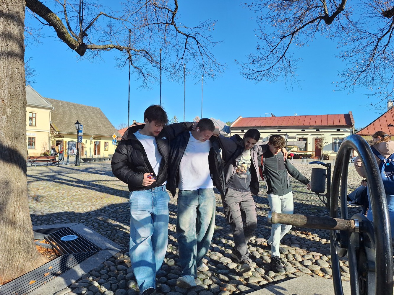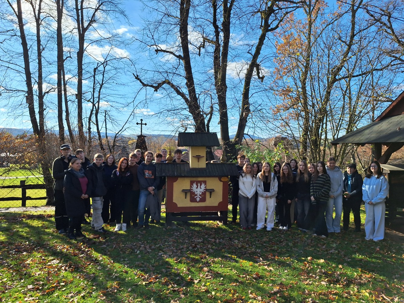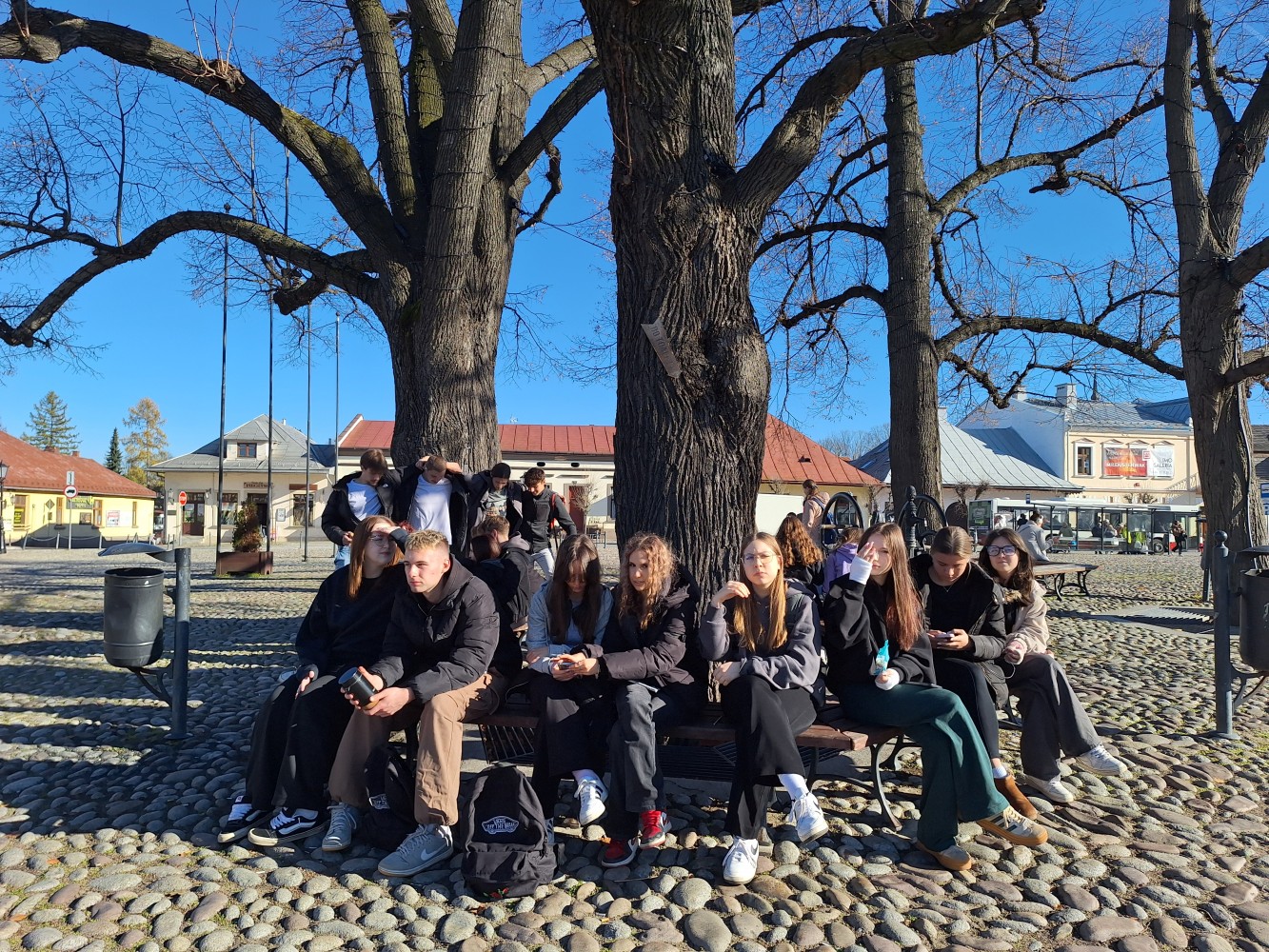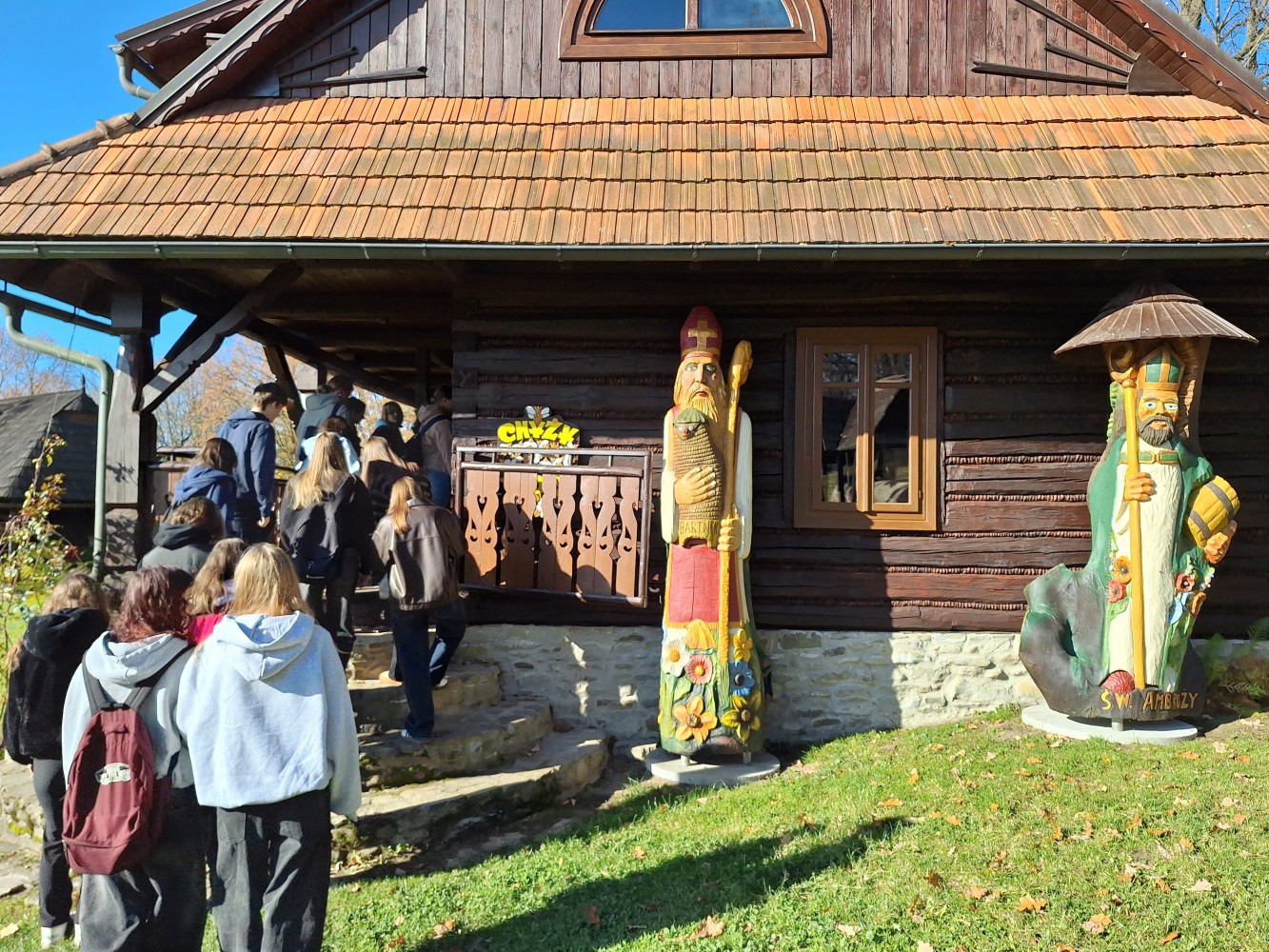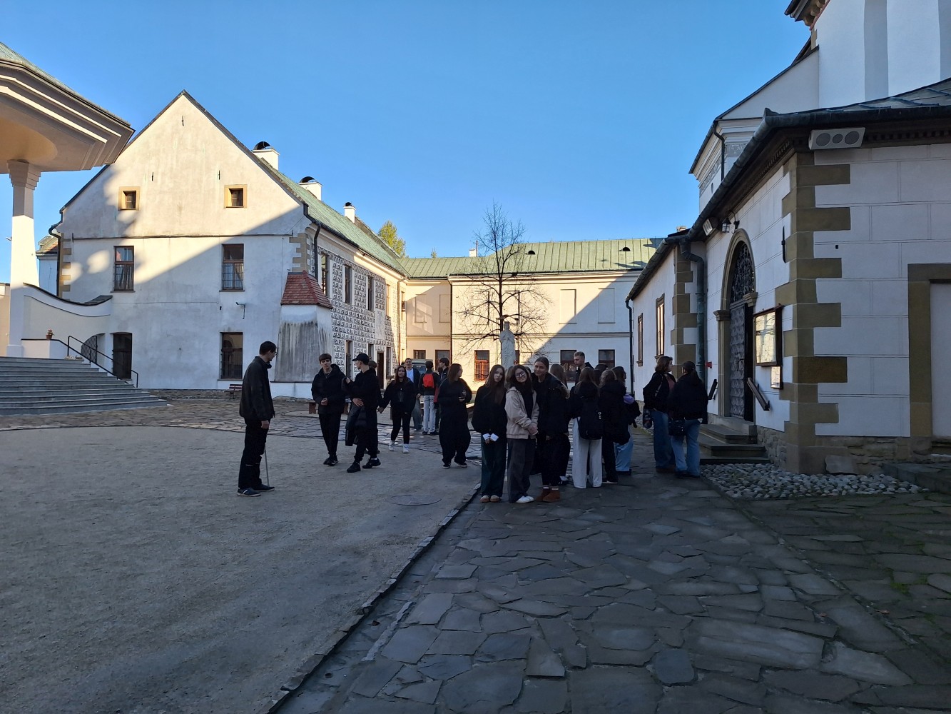 Kolejny dzień to wyjazd do Nowego Sącza. Zaczęliśmy od zwiedzania ruin zamku, który został zbudowany przez króla Kazimierza Wielkiego. Następnie udaliśmy się w pobliże Rynku, gdzie znajduje się Synagoga i poznaliśmy historię tej budowli. Dalej przeszliśmy pod gotycki dom z 1448 roku na ulicy Lwowskiej, który jest jednym z najstarszych i najbardziej charakterystycznych budynków w Nowym Sączu. Po wędrówce wokół Rynku udaliśmy się do Miasteczka Galicyjskiego. Tam mieliśmy okazję przenieść się w czasie i zobaczyć, jak wyglądało życie w Galicji na przełomie XIX i XX wieku. Pani przewodnik podzieliła się z nami ciekawostkami, które pozwoliły nam lepiej wyobrazić sobie codzienne życie ludzi z tamtej epoki.