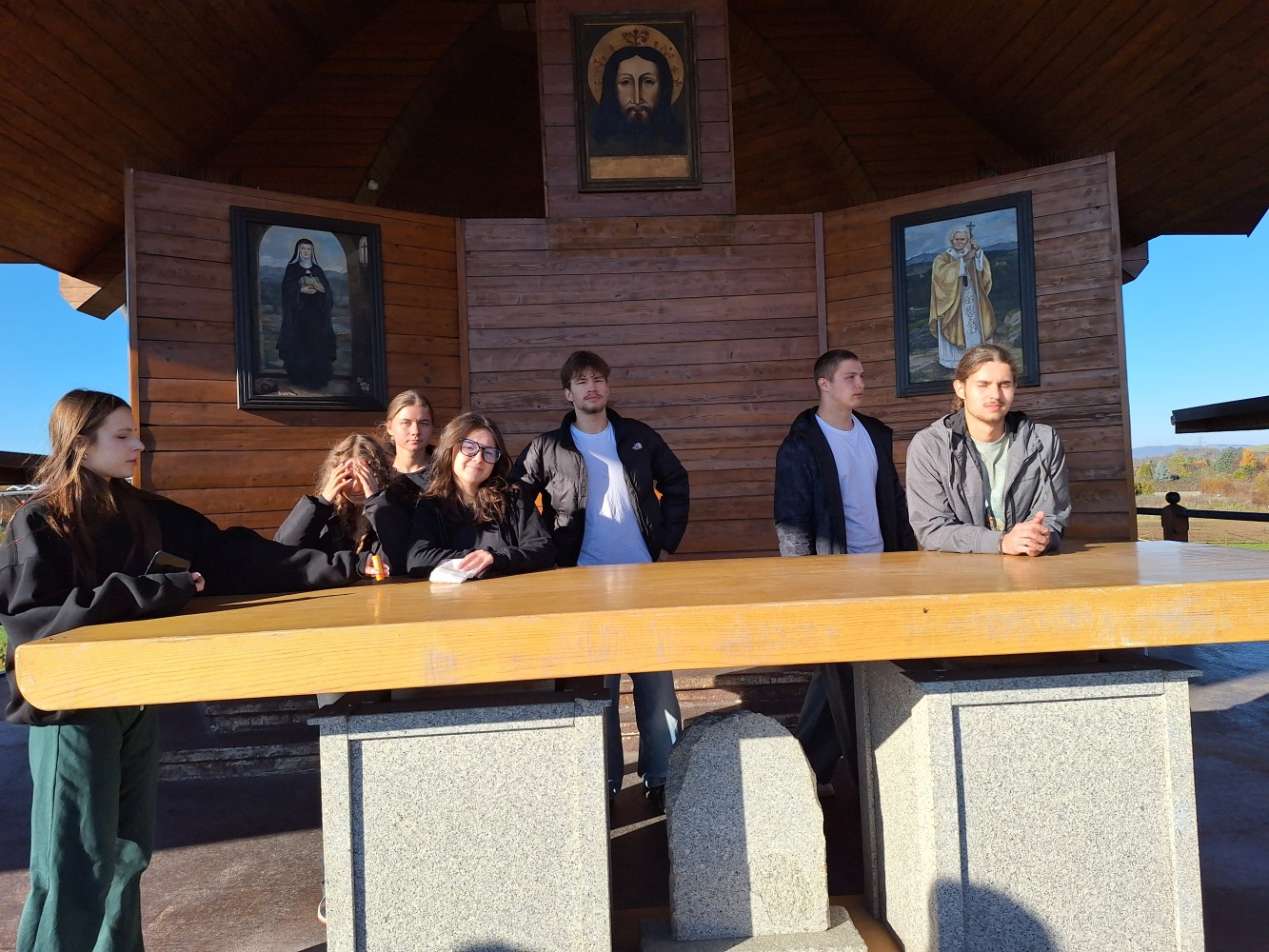 Czwartek był naszym ostatnim dniem zwiedzania. Pojechaliśmy do Starego Sącza, gdzie kierowca wysadził nas przy szlaku edukacyjnym. Wędrowaliśmy ścieżką wśród koron drzew, a na szczycie podziwialiśmy widok na miasto i okoliczne góry. Po zejściu do Starego Sącza udaliśmy się na Rynek, gdzie uczniowie przedstawili historię tego miasta. Na Rynku podziwialiśmy Starą Studnię, a potem przeszliśmy do kościoła w Klasztorze Klarysek. Po zwiedzaniu miasta kierowca przewiózł nas do Centrum Pielgrzymowania, gdzie mieści się muzeum Jana Pawła II. Tam mieliśmy okazję zobaczyć ołtarz papieski oraz salę pamięci Jana Pawła II, która znajduje się pod ołtarzem.