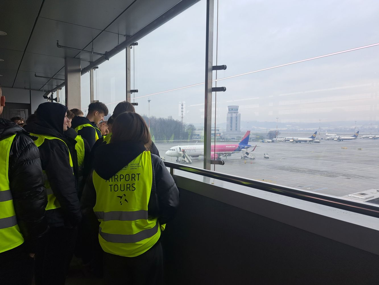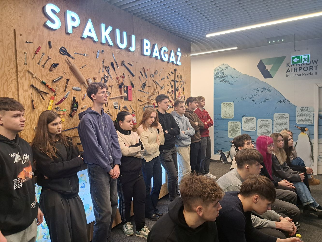 28 stycznia klasa 4L wzięła udział w warsztatach edukacyjnych na lotnisku Kraków Airport. Podczas zajęć uczniowie zostali zapoznani z elementami infrastruktury terminalowej. Poznali tajemnice podróżowania od prześwietlenia bagażu po zajęcie właściwego miejsca na pokładzie samolotu. W czasie warsztatów uczniowie dowiedzieli się jak zbudowane jest lotnisko oraz jak w praktyce wygląda ścieżka odlotowo- przylotowa pasażera. Odwiedzili również z instruktorem taras widokowy.