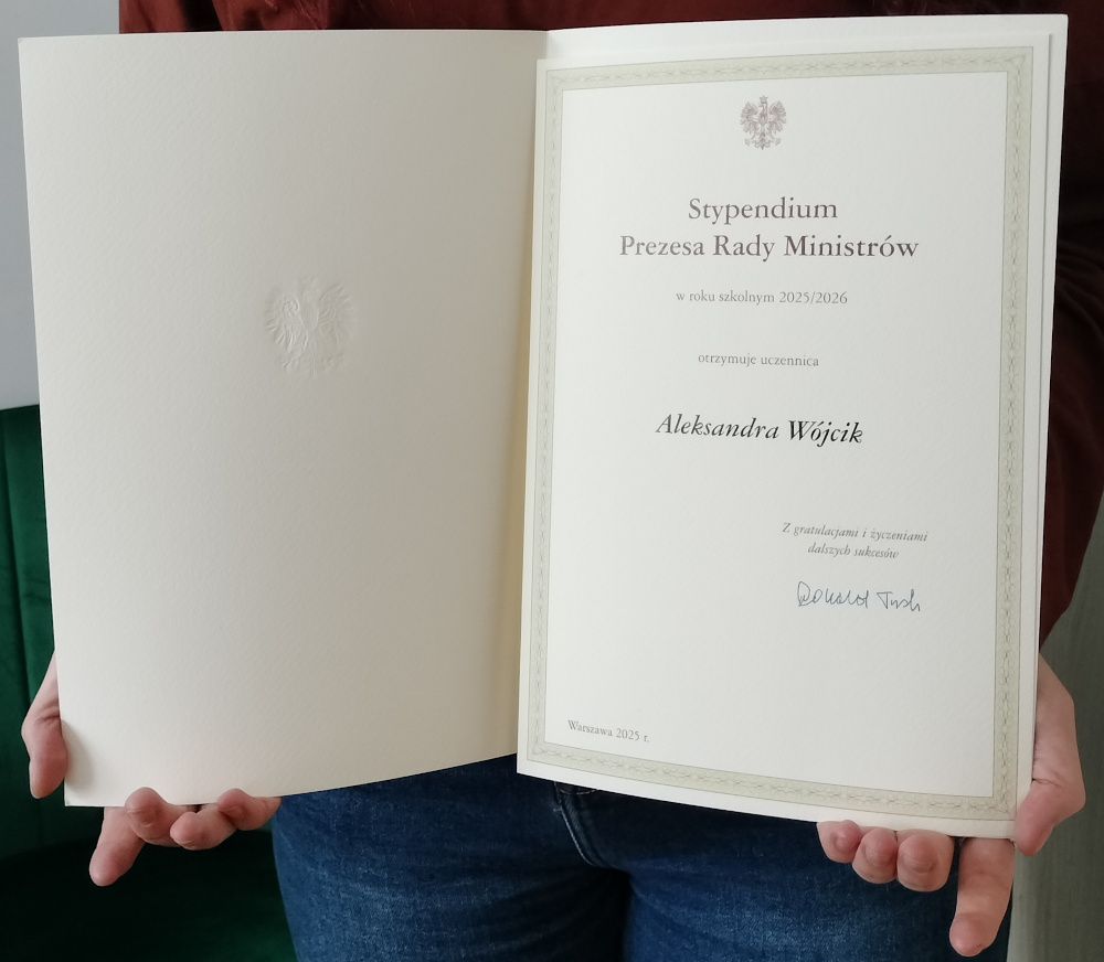 Stypendium Prezesa Rady Ministrów to prestiżowe wyróżnienie dla najlepszego ucznia szkoły ponadpodstawowej, który uzyskał najwyższą średnią ocen oraz ma wybitne osiągnięcia w nauce.