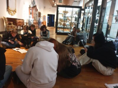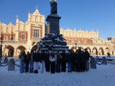 W piątek wyruszyliśmy na miasto, by zdobywać wiedzę w terenie. Uczestniczyliśmy w zajęciach w hotelu oraz lekcji muzealnej, a w przerwie miło spędzaliśmy wspólnie czas. Odwiedziliśmy Hotel pod Różą (najstarszy tego typu obiekt w Krakowie!), gdzie usłyszeliśmy jego historię, obserwowaliśmy codzienne obowiązki pracowników, poznaliśmy standard wyposażenia poszczególnych pokojów i porozmawialiśmy na temat roli influencerów w działaniach marketingowych. W Muzeum Narodowym w Galerii Rzemiosła Artystycznego wzięliśmy udział w lekcji muzealnej dotyczącej historii mody. Dowiedzieliśmy się, czym jest krynolina i kontusz, oglądaliśmy drogocenne akcesoria modowe i przymierzaliśmy elementy garderoby z różnych epok. Rozwiązywaliśmy też przygotowane dla nas zadania i wspólnie zastanawialiśmy nad tym, czym dzisiaj jest dla nas moda i czy Mark Twain przesadzał, kiedy mówił: