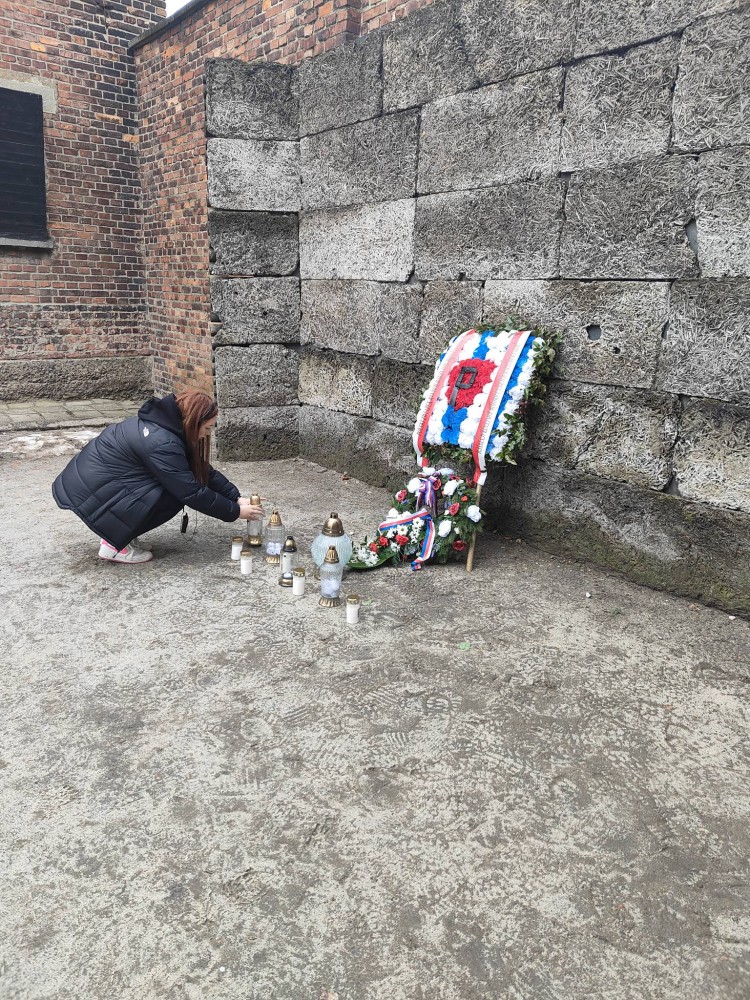 Uczniowie zachowali się wzorowo i z pełną powagą. Z należnym szacunkiem uczestniczyli w zwiedzaniu, wykazując dojrzałość oraz kulturę osobistą. W ciszy i skupieniu zapalili znicze przy ścianie pamięci oddając hołd wszystkim ofiarom obozu.