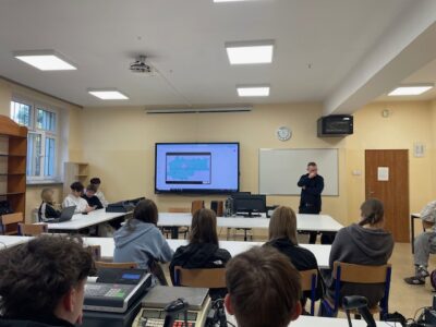 W tym roku szkolnym uczniowie klasy 3e biorą udział w projekcie UMK pt. „Uczeń – Obywatel”. W naszej szkole odbyło się spotkanie i prelekcja z koordynatorem w/w projektu, panem Mariuszem Cupiałem. Było to drugie spotkanie projektowe, a pierwsze miało miejsce w grudniu zeszłego roku, w Urzędzie Miasta Krakowa. Uczniowie 3e poznali strukturę samorządu lokalnego oraz zakres zadań i kompetencji poszczególnych jego organów. Ponadto dowiedzieli się, jakie urzędy są odpowiedzialne za poszczególne działania. Projekt „Uczeń – Obywatel” jest formą uświadamiania młodzieży, że ich głos ma moc. Jako młodzież również mają wpływ na otoczenie.