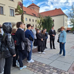 Pu uroczystej inauguracji uczniowie klasy 1R udali się na wycieczkę po Krakowie. Zgodnie z planem uczestnicy wycieczki spotkali się z przewodnikiem na Wzgórzu Wawelskim. Wycieczka rozpoczęła się od zwiedzania Wawelu. Potem uczniowie z przewodnikiem przemieścili się w kierunku Okna Papieskiego. Tam została przedstawiona im historia życia Jana Pawła II. Dalej grupa udała się do Collegium Maius, gdzie przewodnik opowiadał między innymi historię pierwszej polskiej studentki – Nawojki. Następnie uczniowie przemieścili się na Rynek Krakowski, tam poznali historię Kościoła św. Wojciecha, Kościoła Mariackiego i Sukiennic. W dalszej kolejności wycieczka przeszła ulicą Floriańską w kierunku Barbakanu. Przewodnik zatrzymał się przy Bramie Floriańskiej i zwrócił uwagę, że ta brama jest pozostałością po dawnych murach miejskich oraz nadmienił, że niedaleko od tego miejsca znajduje się Muzeum Książąt Czartoryskich ze słynnym obrazem Leonarda da Vinci – Dama z gronostajem. Wycieczka zakończyła się obok Barbakanu, gdzie grupa dowiedziała się jaką rolę pełnił ten obiekt w dawnych czasach. Uczniowie byli zadowoleni z opowiadań przewodnika i podziękowali za ciekawostki brawami.
